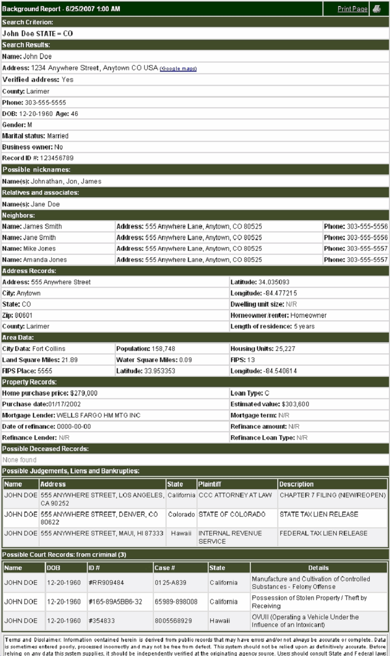People Search Sample Report